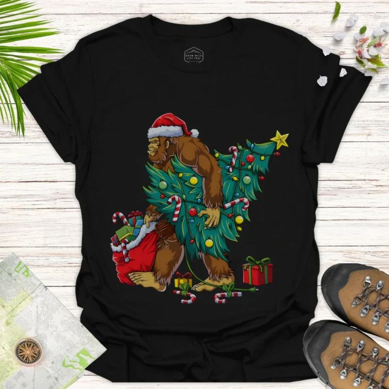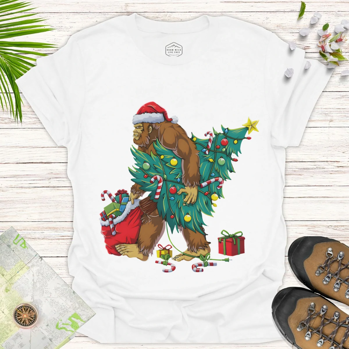 Bigfoot Christmas T-Shirt Funny Sasquatch Santa Graphic