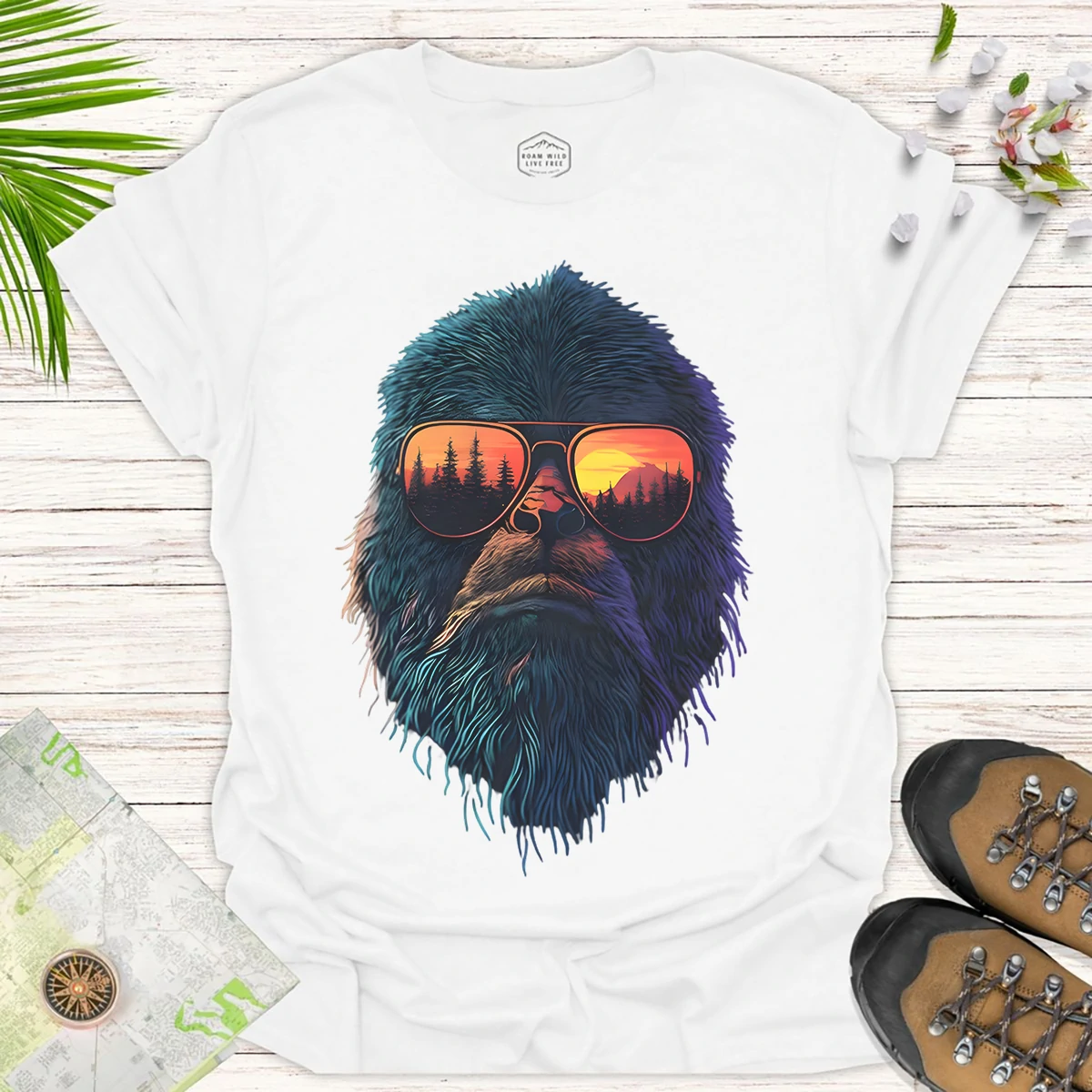 Bigfoot Sunset Tee – Funny Nature Adventure Graphic Shirt