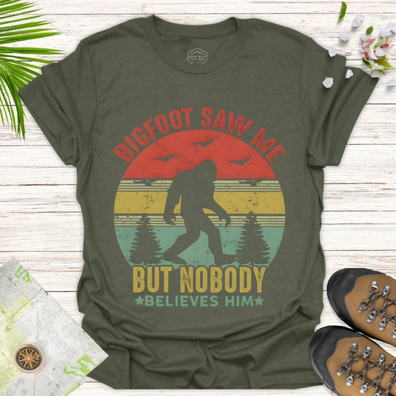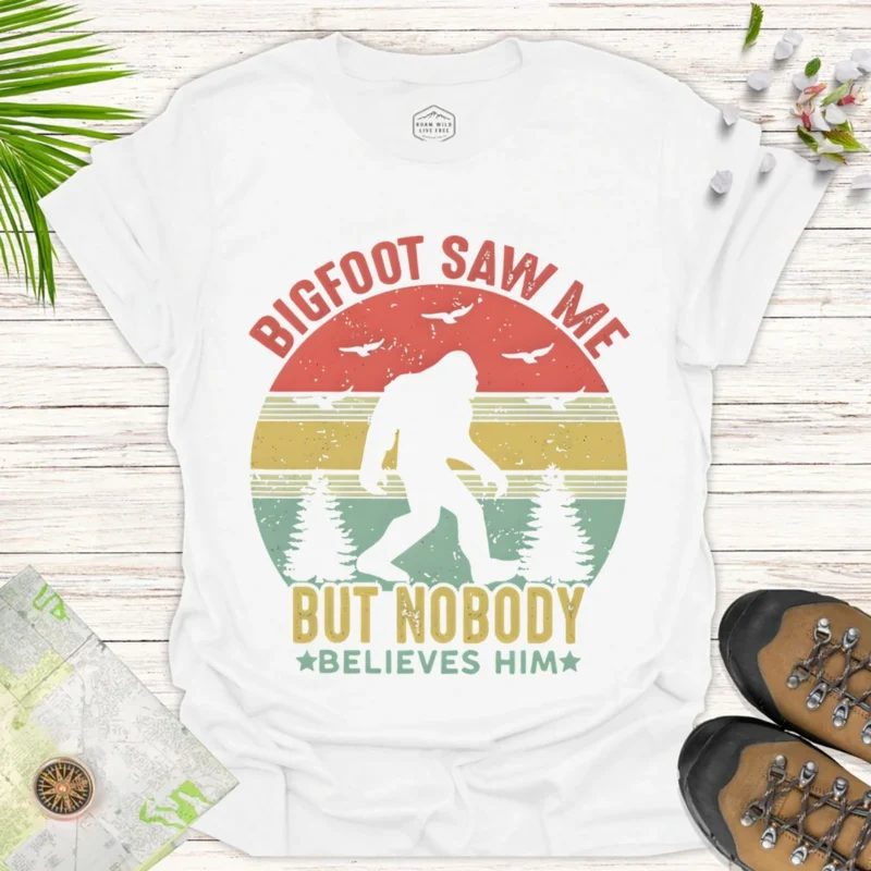 Funny Bigfoot Tee Retro Sasquatch Camping Graphic