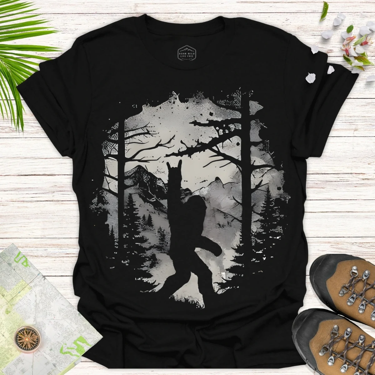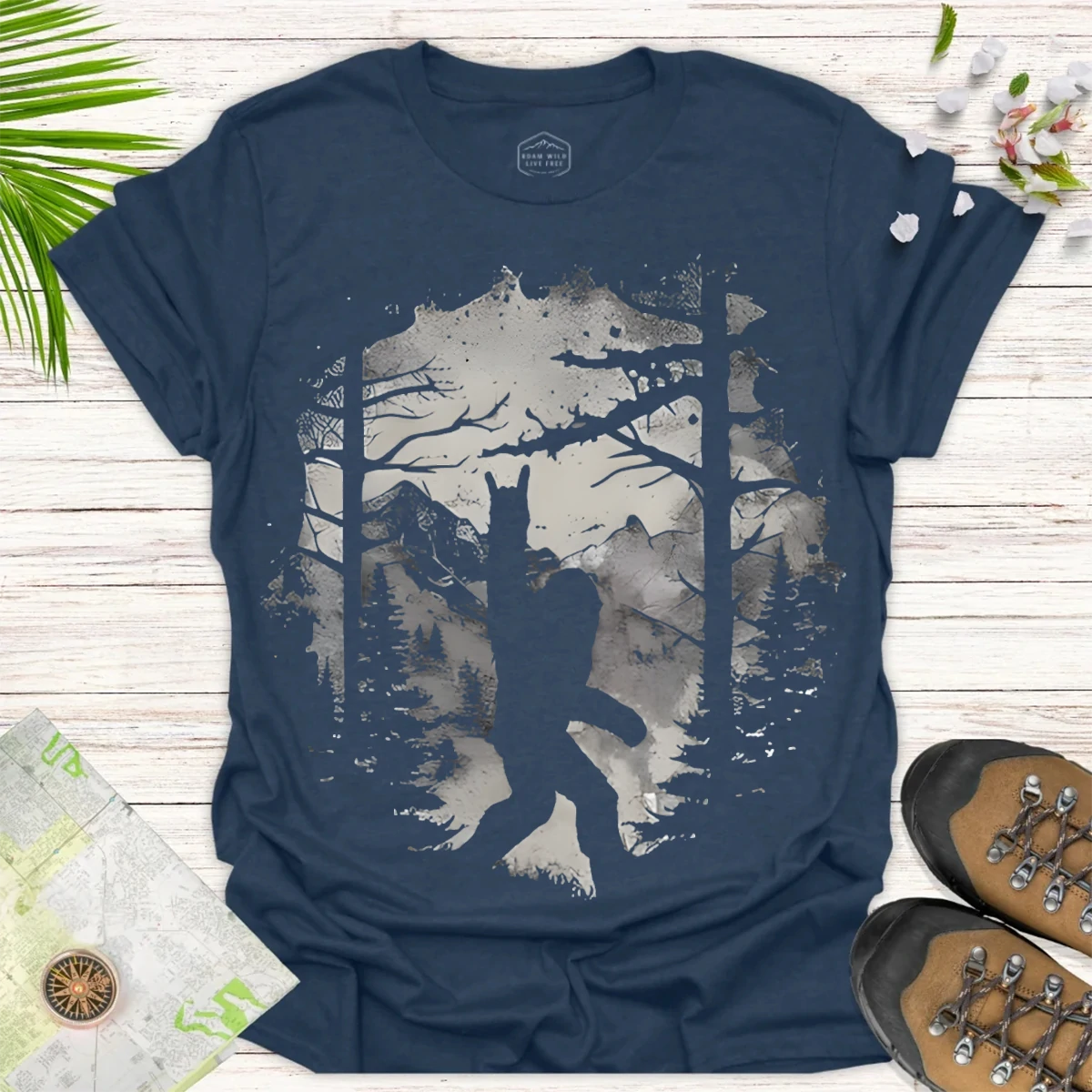 Moody Forest Bigfoot Tee – Wolf & Nature Adventure Shirt