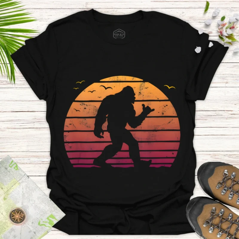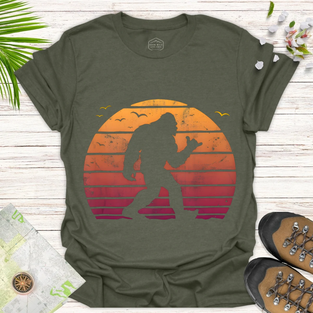Vintage Bigfoot T-Shirt Sunset Silhouette Design